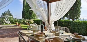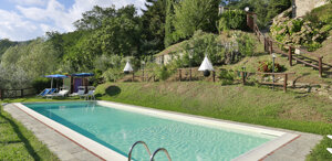 Misura metri 13,00 x 5,50 con sistema di disinfezione a sale e non cloro. Esposta in pieno sole tutto il giorno difronte ad un panorama che si apre sulla valle. In piscita trovate lettini, sdraio e tavolo e sedie sotto un gazebo di canne. La piscina รจ ad uso del Forno e del Fienile.